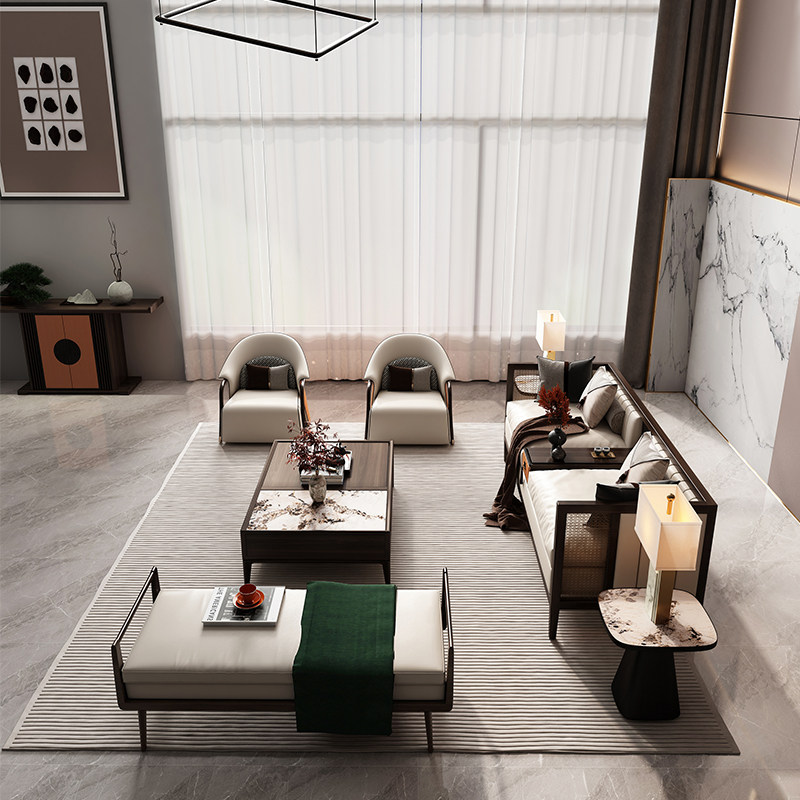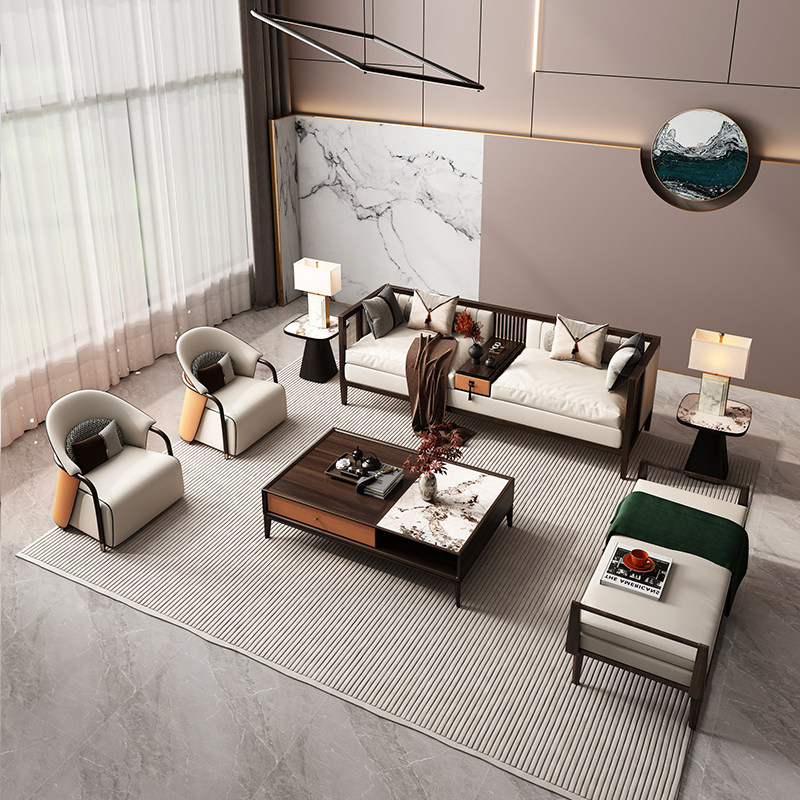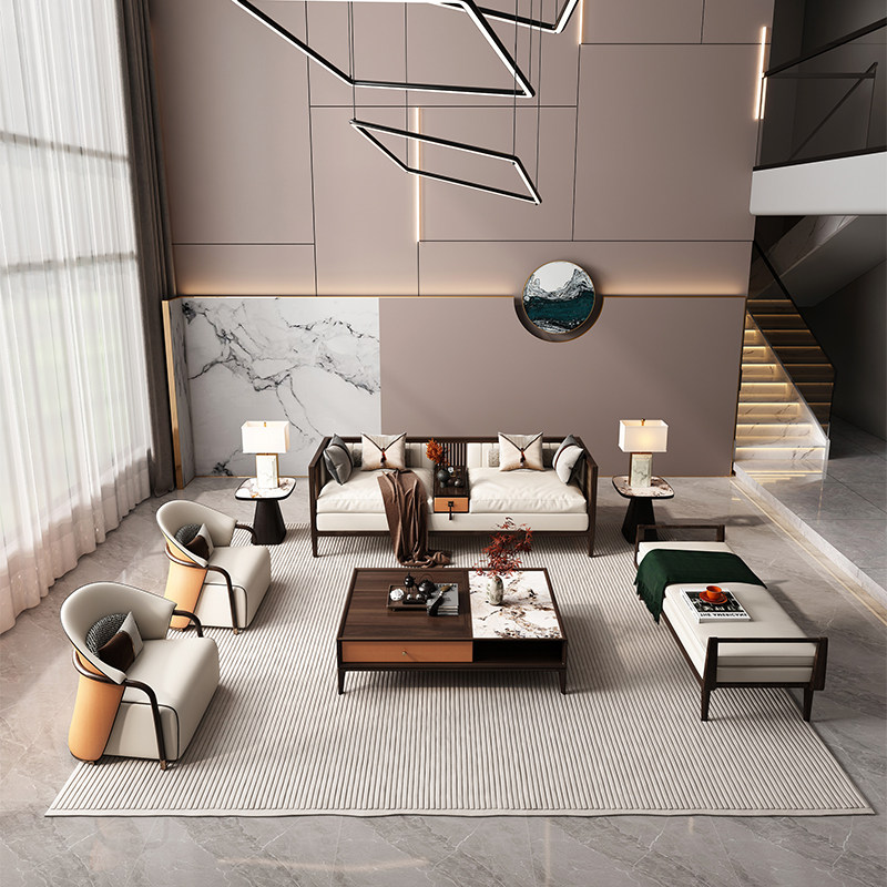 New Chinese solid wood sofa composition Ukim wood modern minimalist villa size family style living room light and luxurious furniture custom-made-Taobao