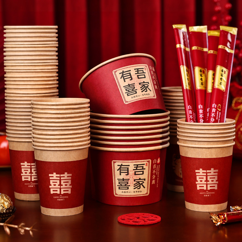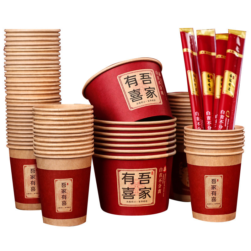 Disposable Bowl Wedding Bowls Chopsticks Suit Paper Bowls Thickened Festive Bowl Wedding Banquet Wedding Cutlery Cupcakes Wedding items Grand-Taobao