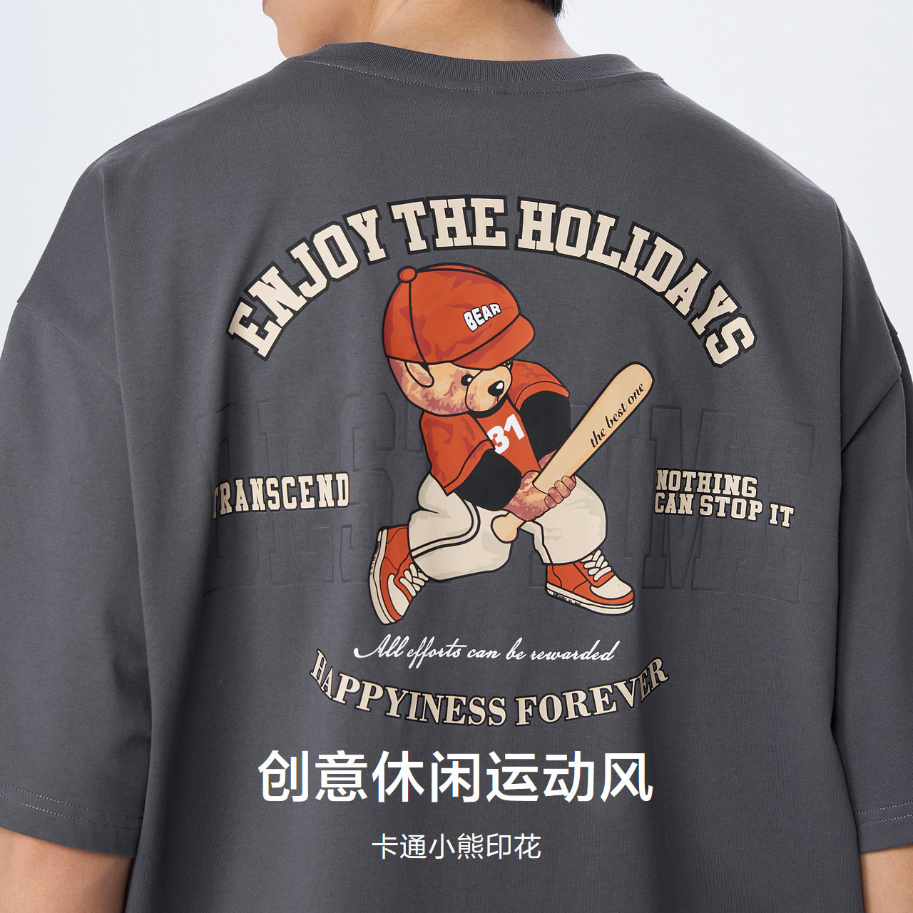 Senmar short sleeve T-shirt male 2023 Summer new hygroscopic perspiration lovers loose cartoon printed round collar blouses-Taobao