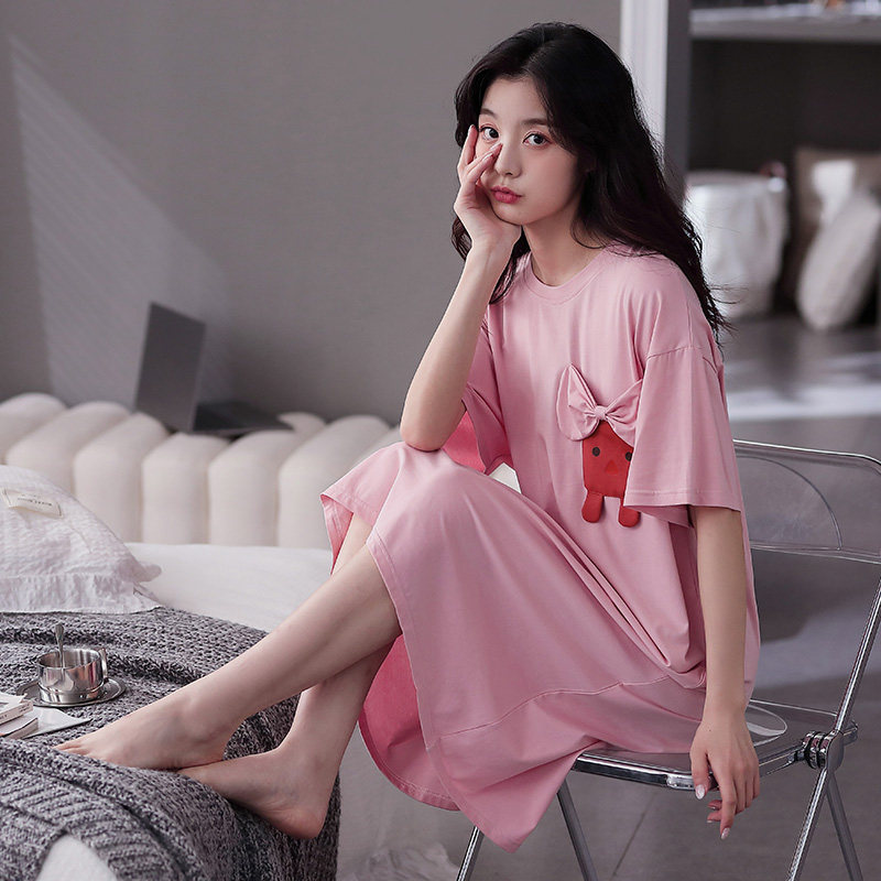 2023 Sleeping dress summer short sleeve middle - sleeve skirt red blast thin sexy live color home suit
