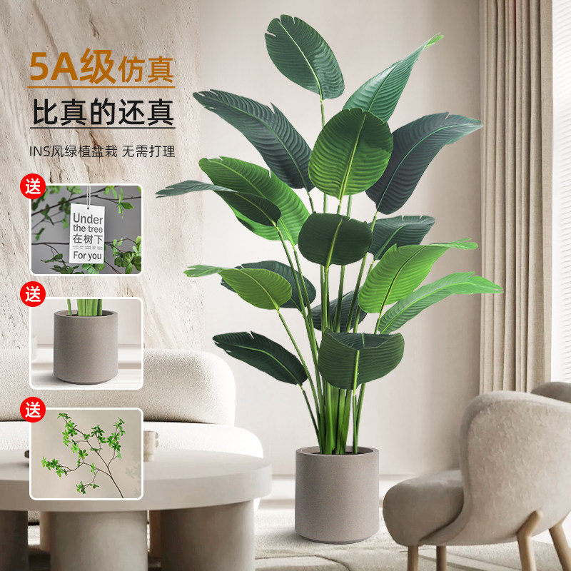 Brigade People Banana Emulation Green Planting Fake Tree Indoor Light Lavish Potted Bionic Plant Living Room Decoration Pendulum of Heaven and Birds Fake Flowers-Taobao