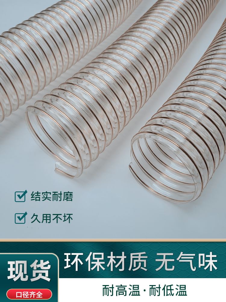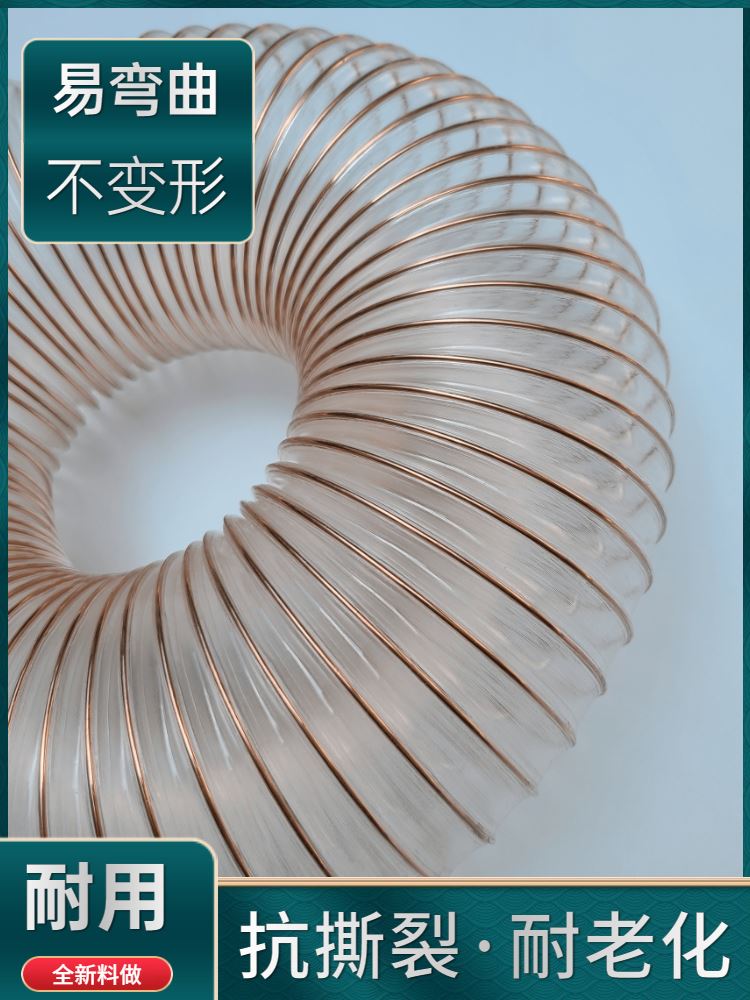 Transparent suction pipe PU polyurethane steel wire wind pipe plastic ventilation high temperature resistant corrugated telescopic thickened exhaust hose-Taobao