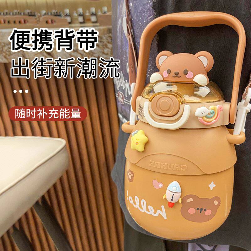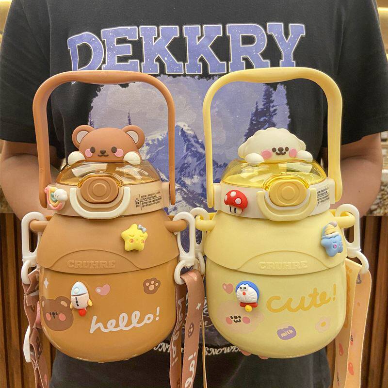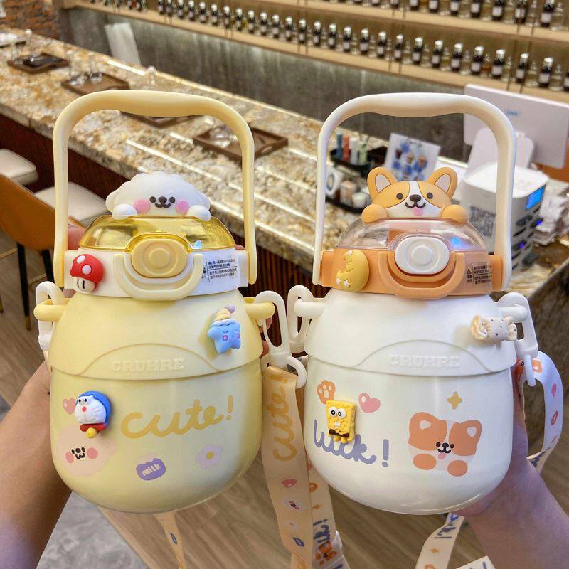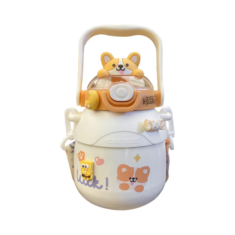 Cartoon large belly insulated cup 316 portable water glass high face value straw inclined satchel student children's cup sports kettle