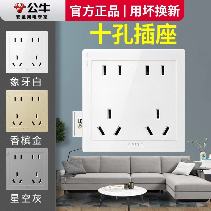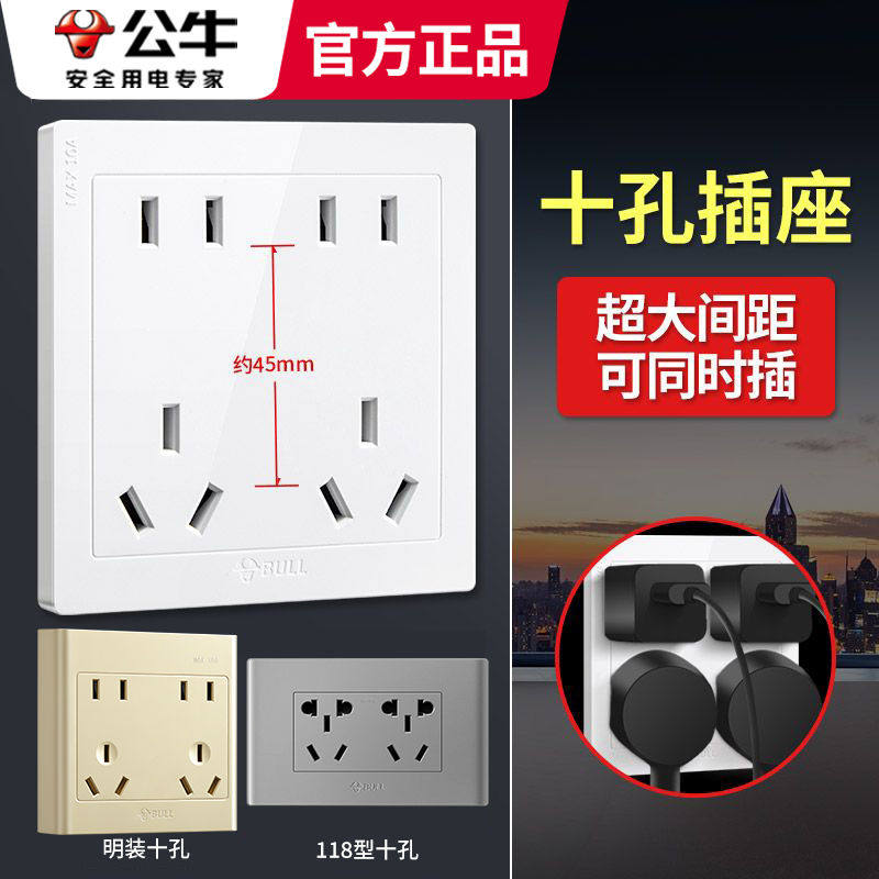 Bull ten Holes Socket 86 Type Concealed Transplaced Double Five Holes Clear Fit Socket Panel Three Holes Six Holes 10A-Taobao