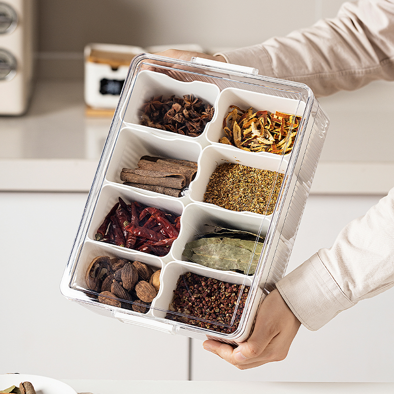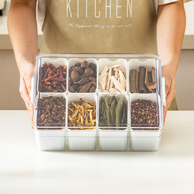 Seasoning Compartment Compartment -8 Gmilk White (Upgrade Handle Moistureproof) Seasoning Split compartment -4 Gmilk white (moisture-proof anti-string taste) Seasoning Split compartment Compartment -8 Gbai