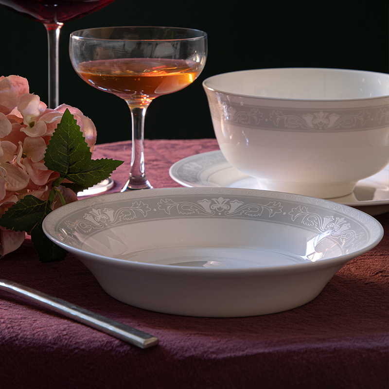 REONE Set High-end Bone China Tableware Light Luxury Microwave Gift Embossed Tableware
