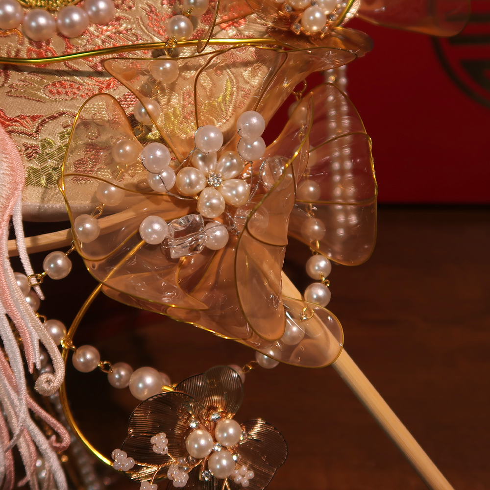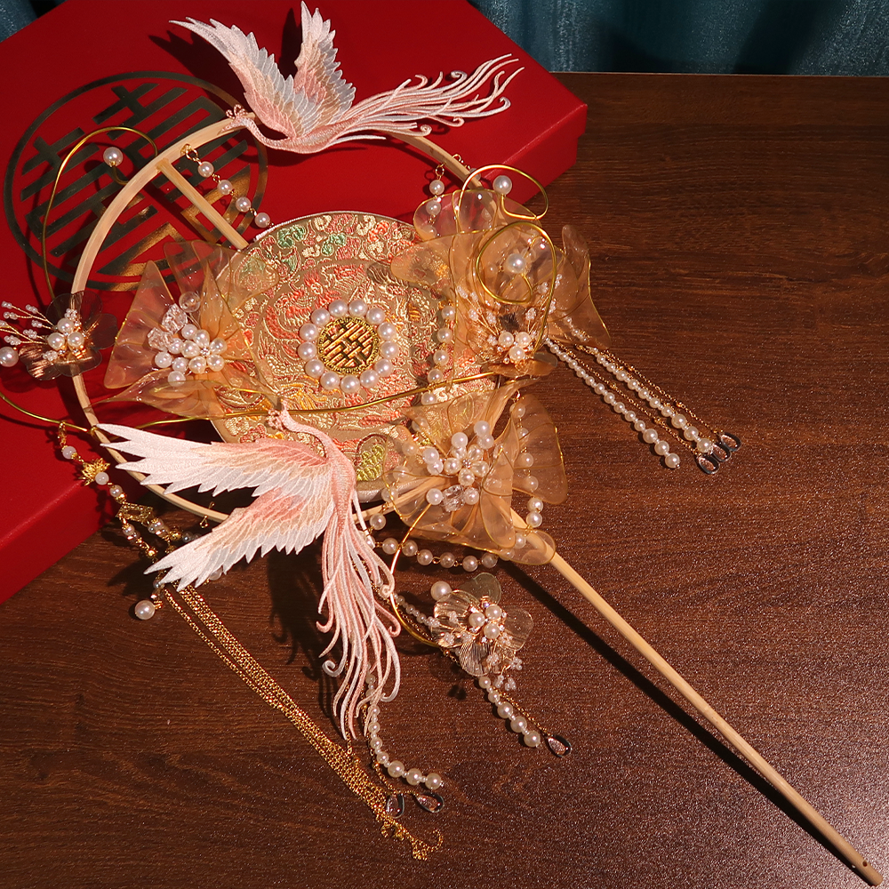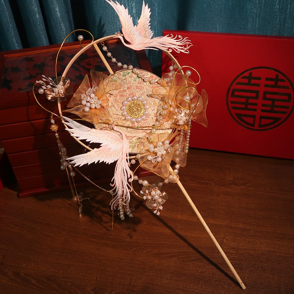 Xiuhe fan bride married fan diy material embroidered ancient fan wedding fan Chinese wedding fan handheld flowers