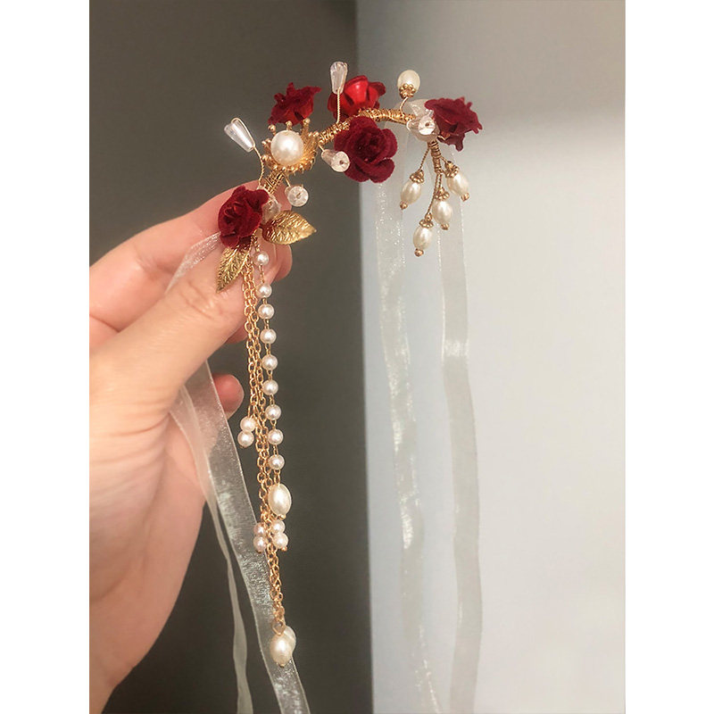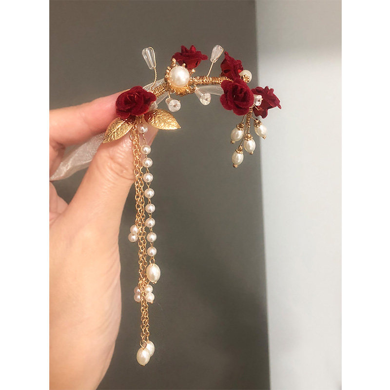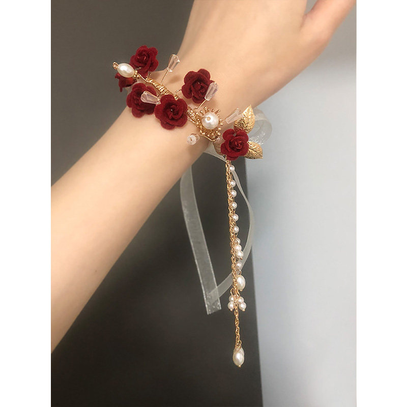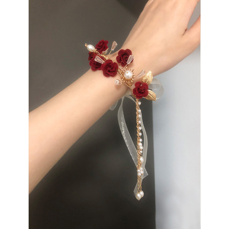 Red Wrist Flower Flow Su Meritocracy Luxury Velvet Rose Wine Red Chinese Wedding Festive Bridal Bridesmaid Handflower-Taobao