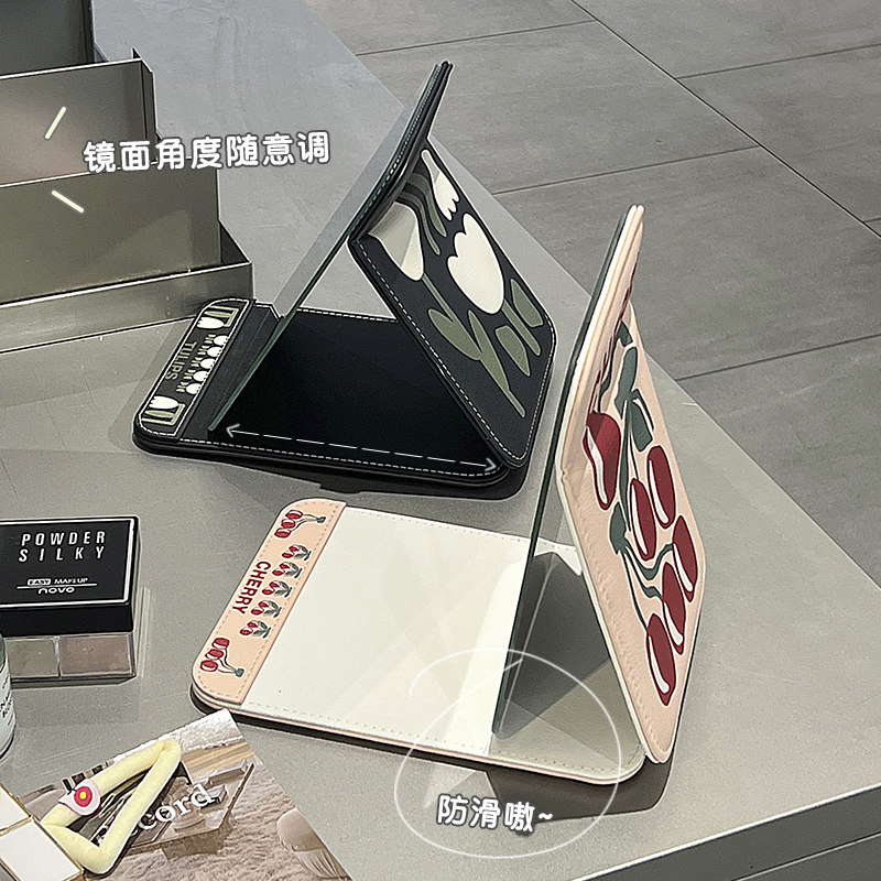 High face value make-up mirror female folding portable small mirror student Dormitory Dresser office Desktop can stand for home