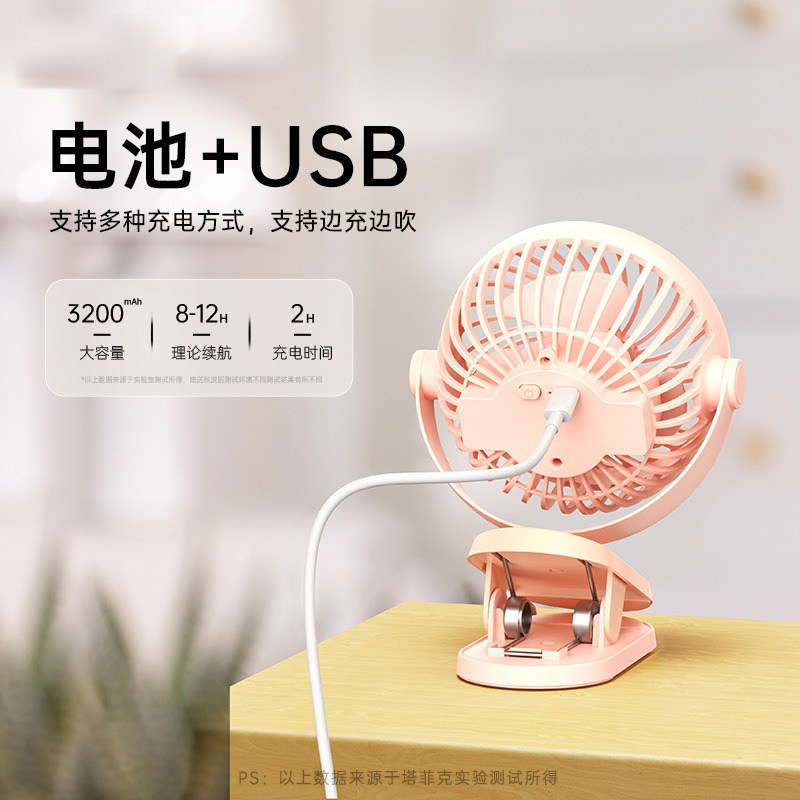 USB Small Fan Small Type Bench Clip Type Bedside Office Desktop Dormitory Portable Large Wind Home Mini Rechargeable Super Summer Hand Held Electric Fan Cool Down God Blow Cog 406-Taobao