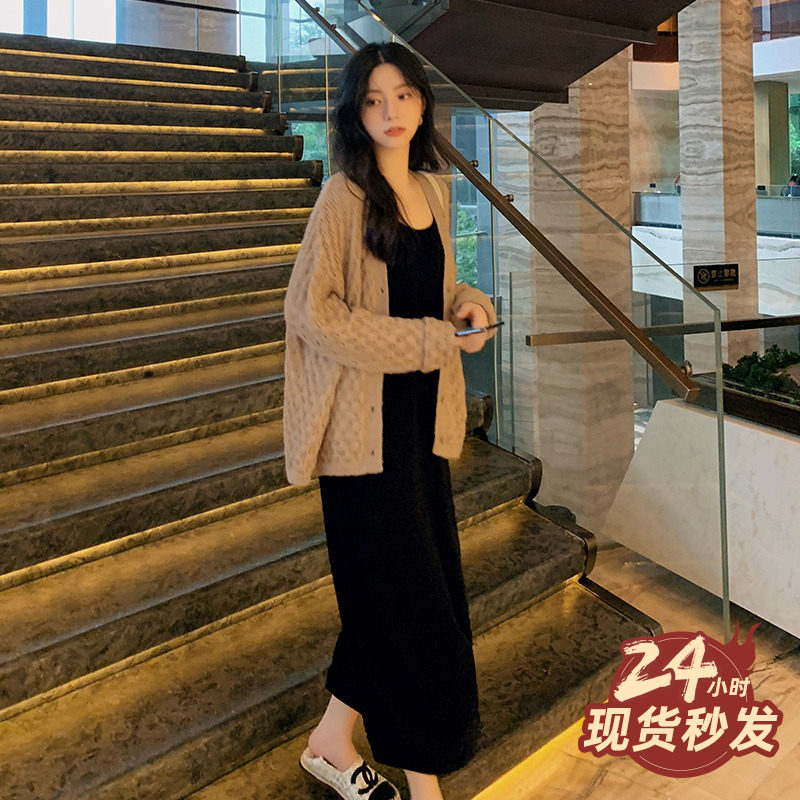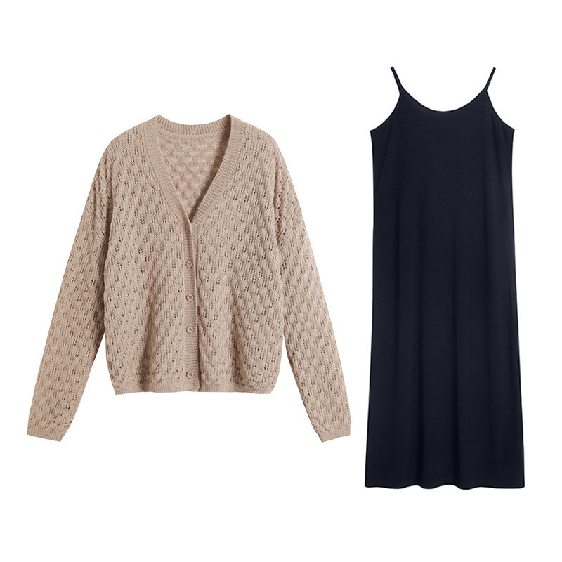 Blue Language Big Code Woman Dress Fat Mm Knit Cardiovert Style Harness Dress With Dress 2023 Fall Veil slim fit two sets-Taobao