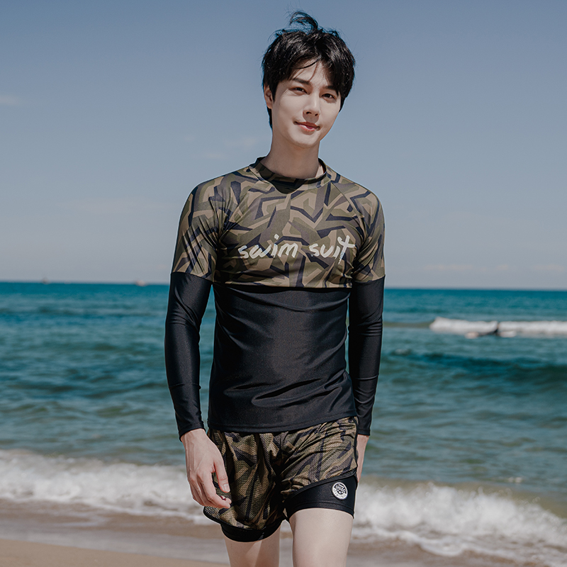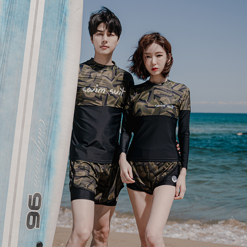 Swimsuit women's split couple long-sleeved sunscreen conservative boxer pants cover belly slimming hot spring student sports diving suit female
