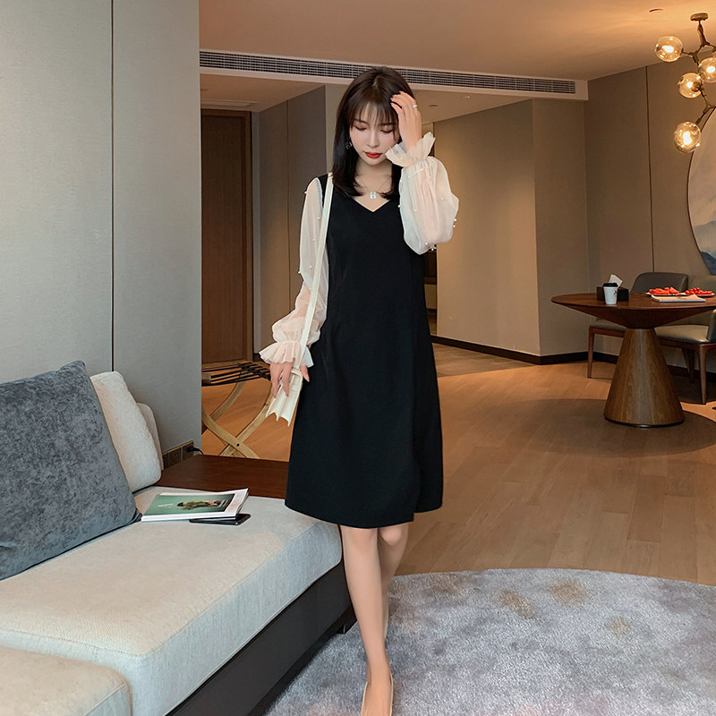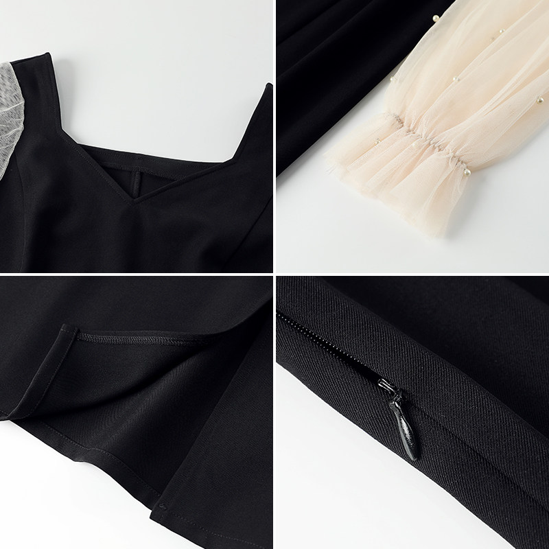 Blue Large Code Women Fat mm French Temperance WearsSpring Dress Spring New Skin Skin Fork Small Black Dress