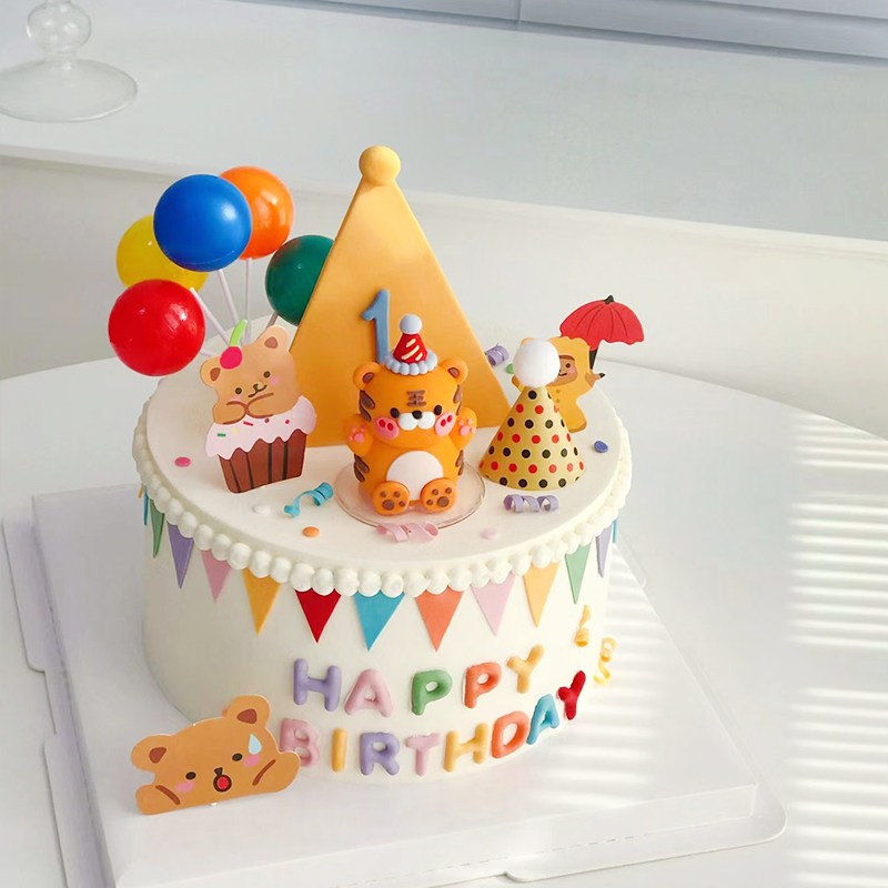 Children's 1st birthday cake decoration gift hat tiger baby boy ornament macaron balloon plug-in card