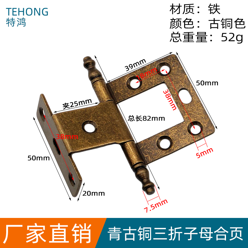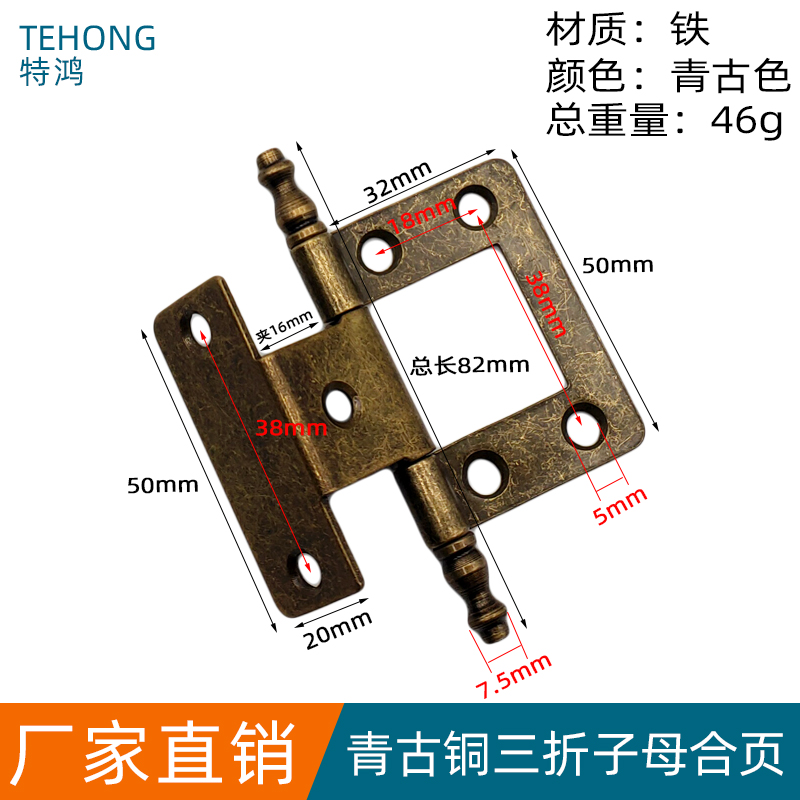 Three-fold primary-secondary hinge splint synthetic-leaf black retro antique antique leaf click ancient cabinet door furniture hinge connection accessory-Taobao