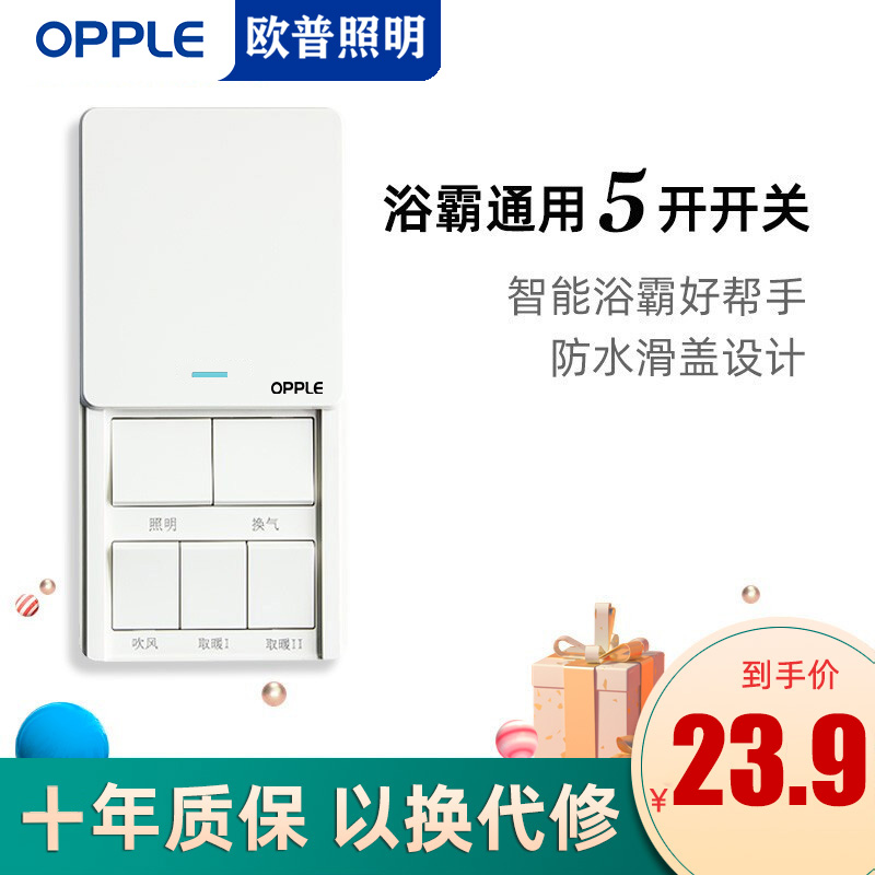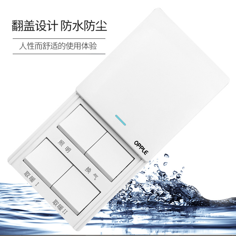Opbath Bully Five Opens With Lamp Warm Waterproof 86 Type Panel Four Open Home Bathroom Five All-in-one Toilet Switch