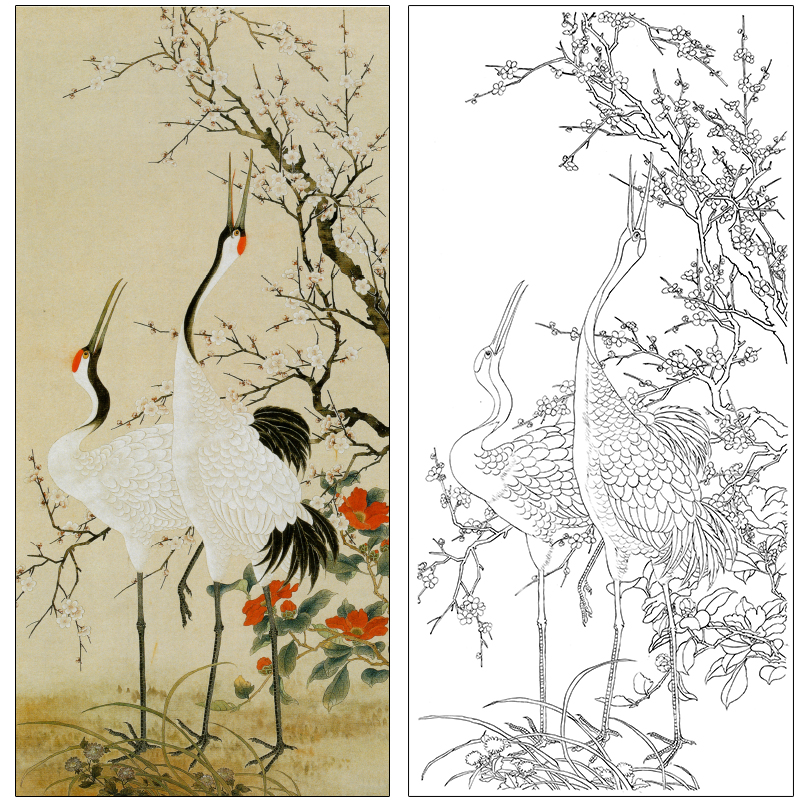 The white painting of the famous blossom of the famous flower and bird of the famous blossom, the physical printing of the crane A090
