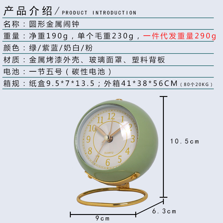 European-style metal clock creative silent children's electronic alarm clock simple living room bedroom student night quartz watch