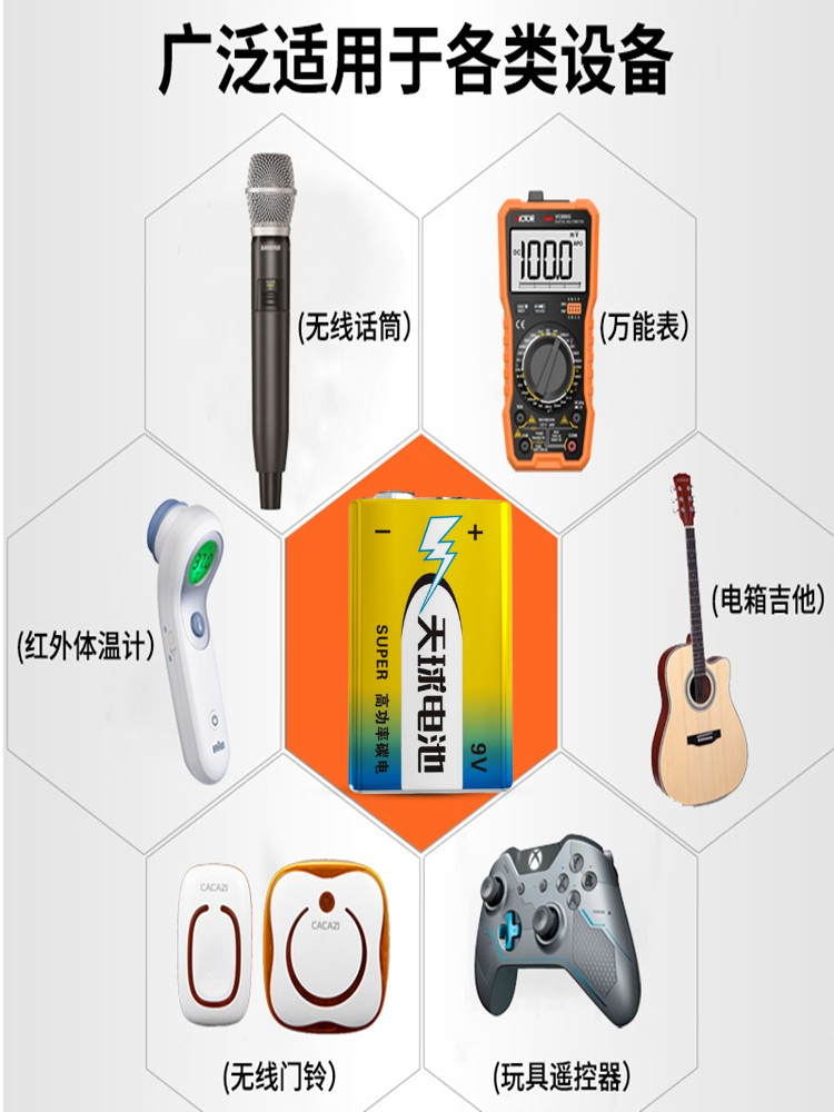 Rechargeable battery 6F229v square remote control Wanuse table toy microphone remote control body temperature gun smoke alarm