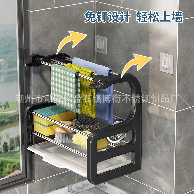 Rag rack kitchen shelf with no punch counter wall hanging sponge asphalt white cleaning cloth holding frame spoon frame