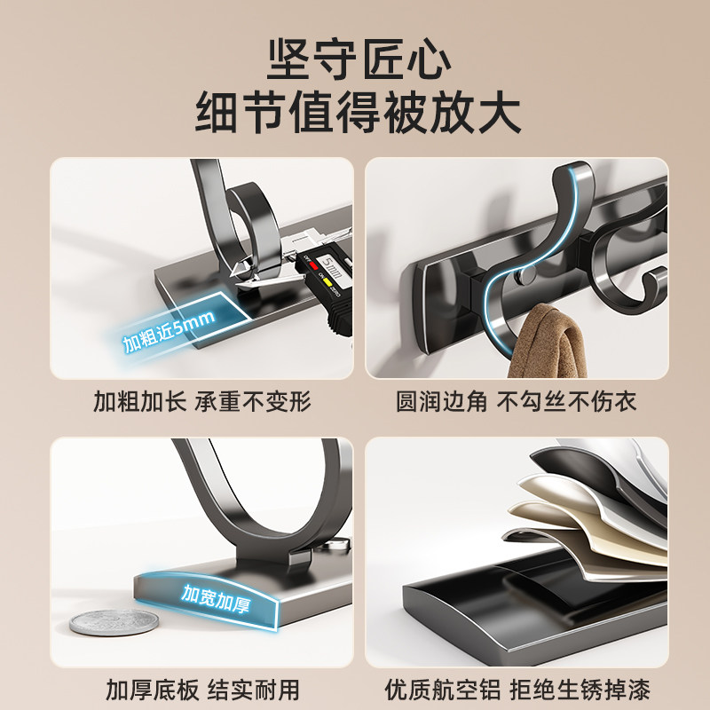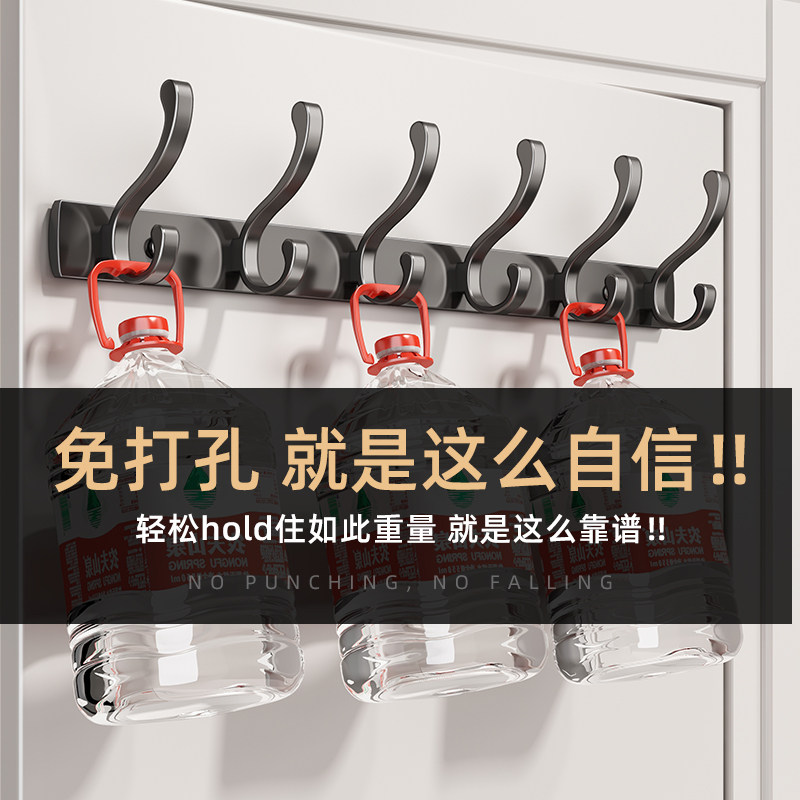 Hanging clothes hanger wall-mounted wall door rear hanging clothes hook free from punching into door Xuanguan adhesive row hook powerful bearing coat cap hook-Taobao