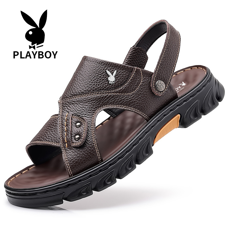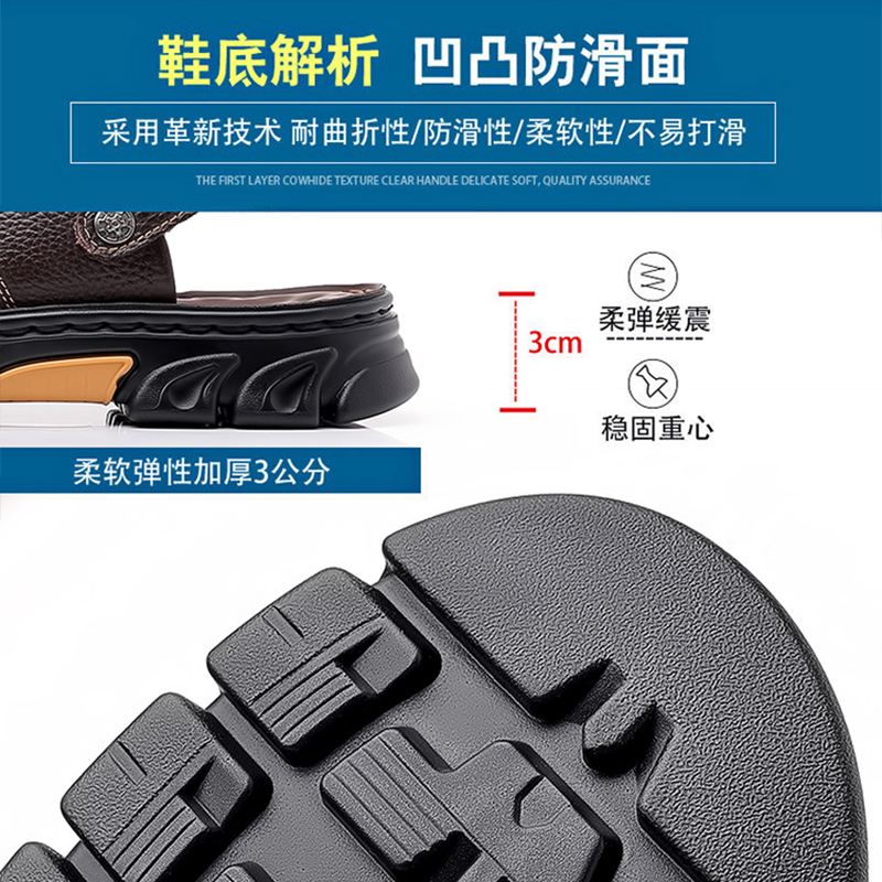 Floral Playboy sandals men's 2023 Summer new casual beach shoes genuine leather thick bottom non-slip middle-aged dad slippers-Taobao