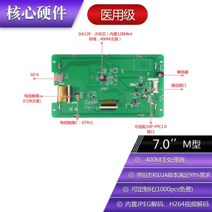 7 inch 8P interface Medical grade capacitor COB RS232 TTL serial port screen Guangzhou color