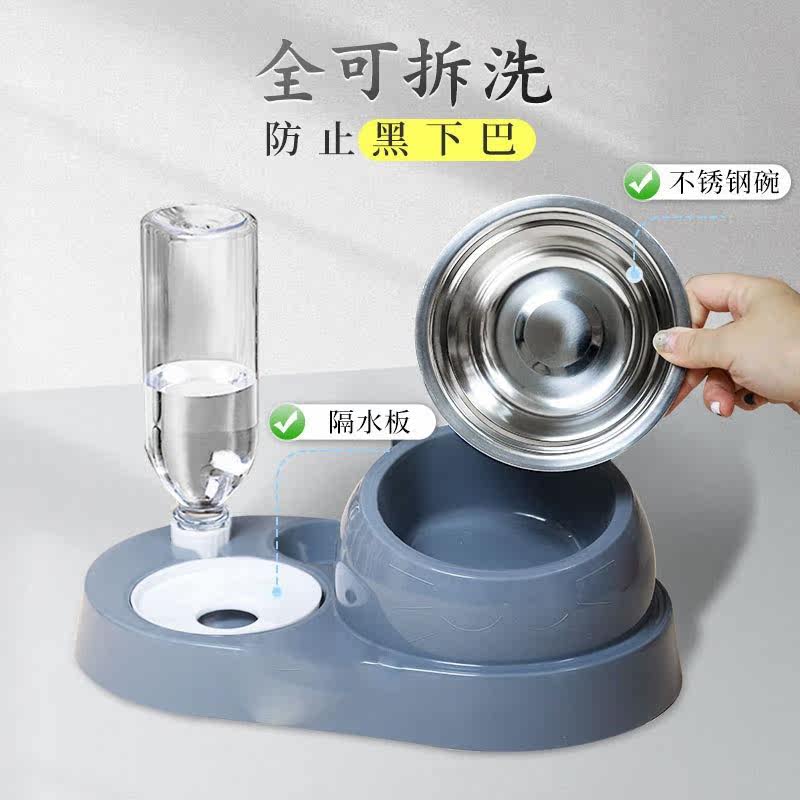 Dog bowl bowl basin with a bear anti-dumping water drinker, unwet mouth dog double bowl of small dog supplies large