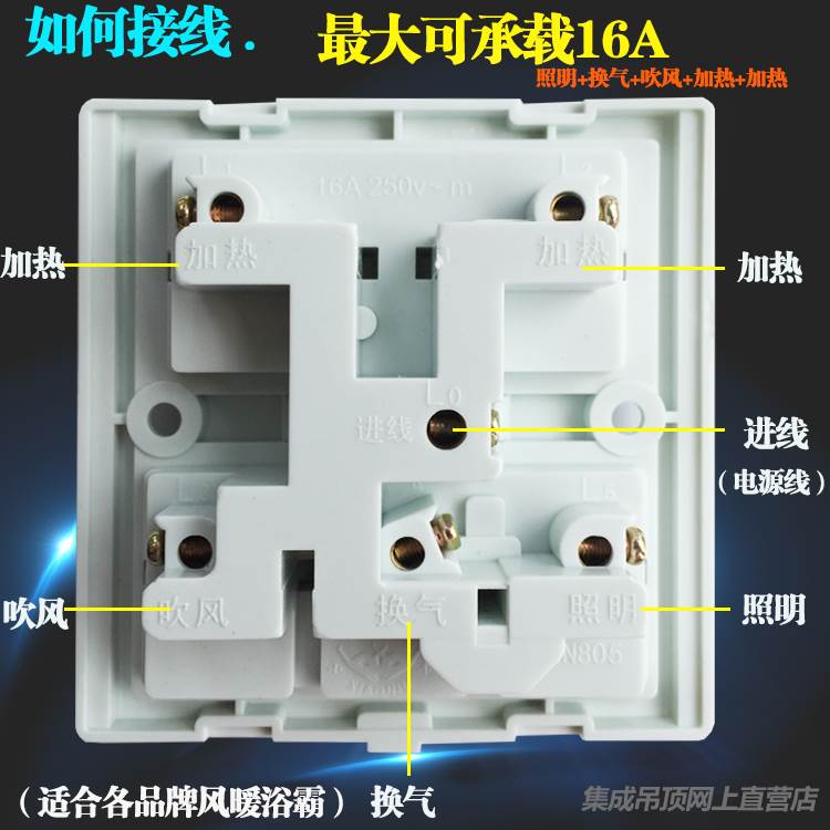 Xunhua 86 type 5 open 16A high power bathroom bathroom air heating universal with waterproof slip cover integrated hanging