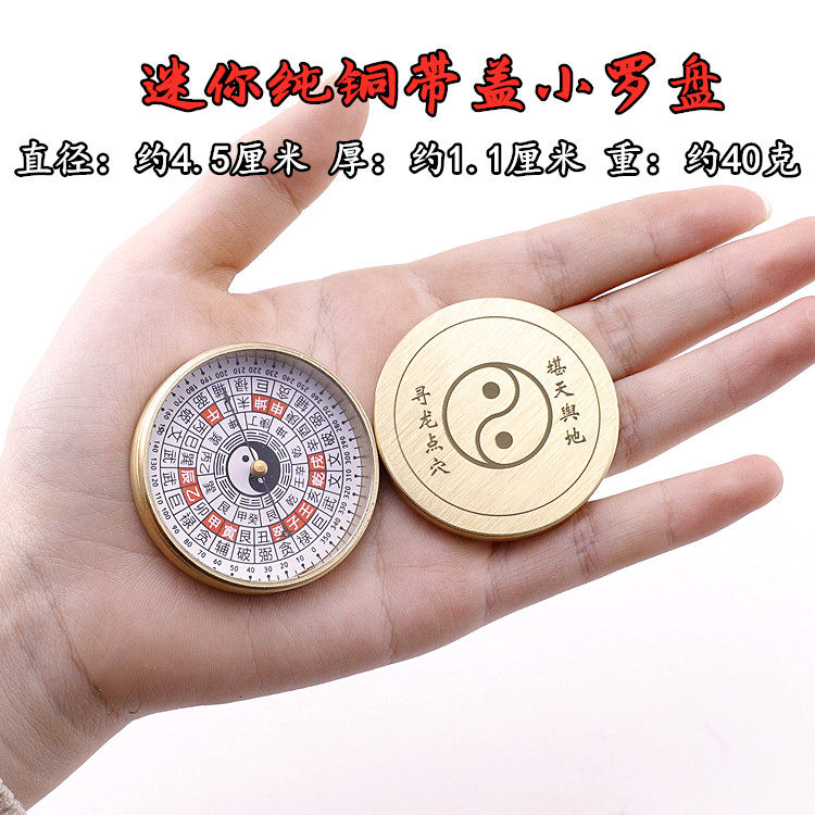 High-precision pure copper belt cover 4 5 cm gossip compass mini palm pocket feng shui plate for beginners to carry