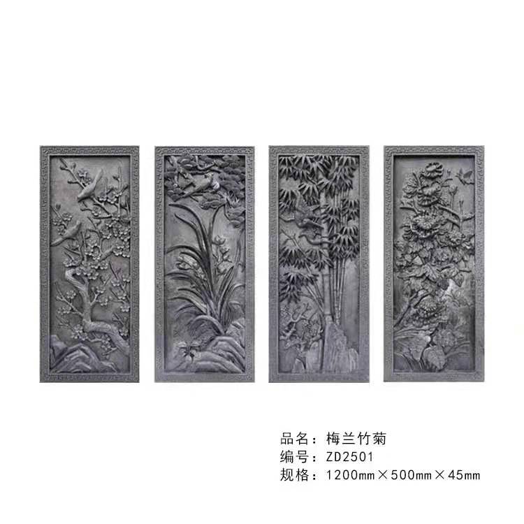 Vertical Brick Carving Chinese Style Courtyard Ancient Building Brick Sculpture Relief Wall Green Brick Background Wall Decoration Pendant Melan Bamboo Chrysanthemum-Taobao