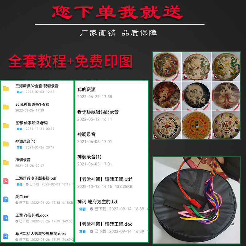 Moon King Drum Black Mountain Goat Leather Divinity Drum Sending Sing Word God Tune Single Sided Drum Ask God The Great God Drum Town Hall Drum Vines Whip-Taobao