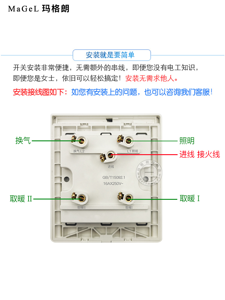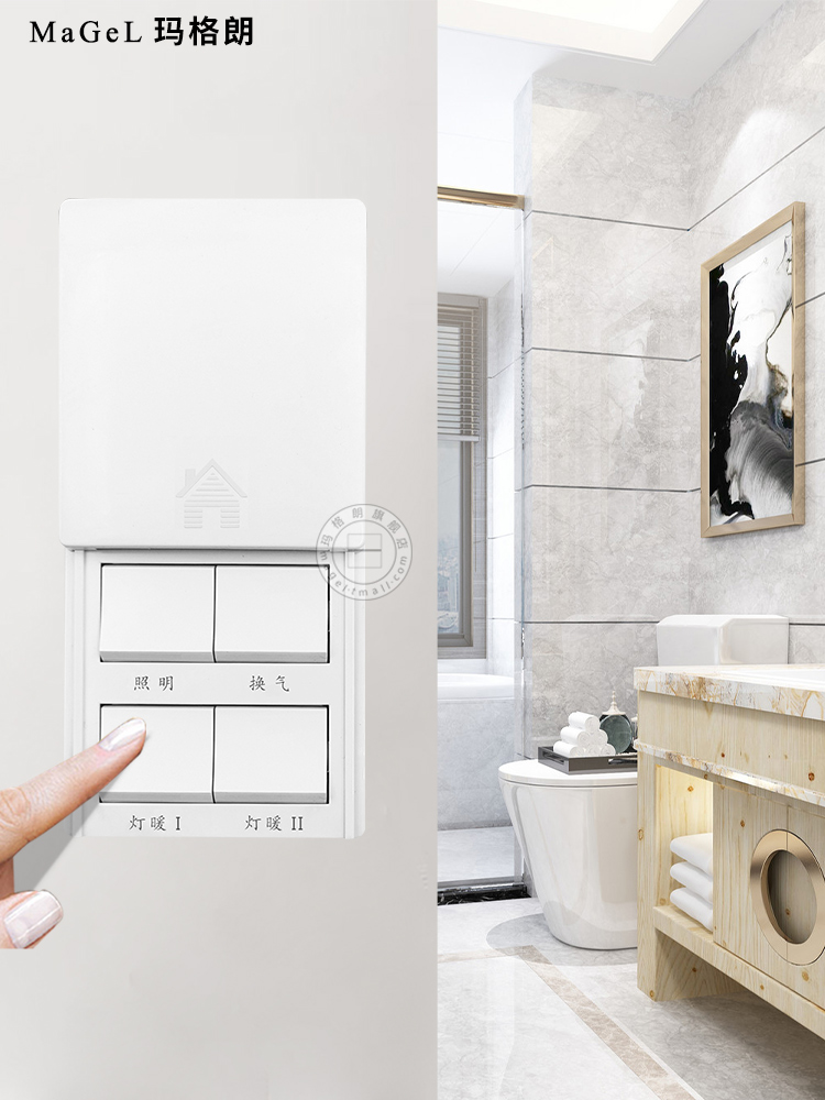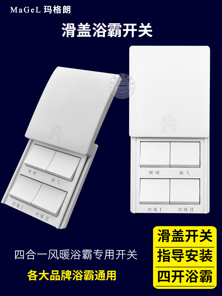 Household wall bath switch Four open bathroom four in - one heating fan 86 type waterproof switch panel