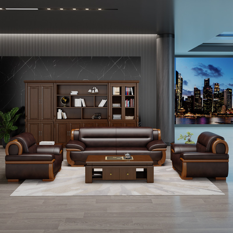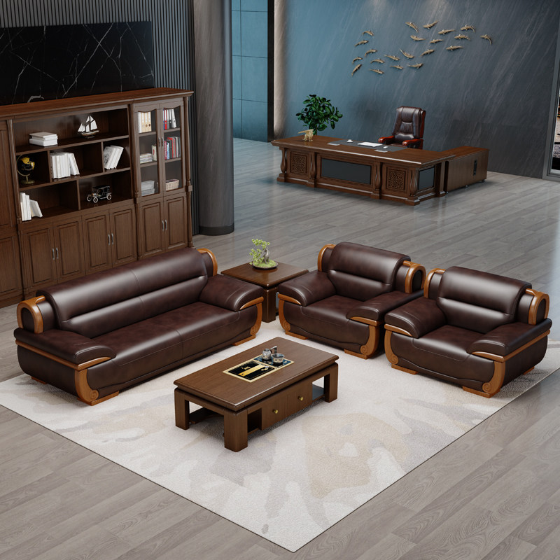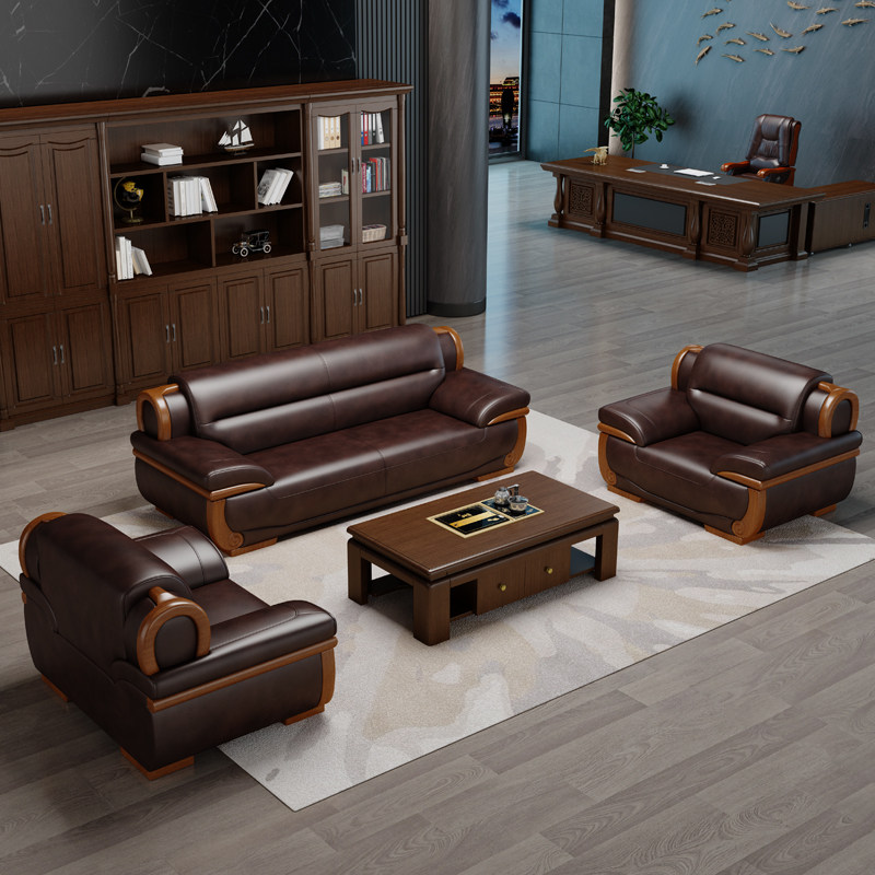Real leather office sofas tea table combined upscale atmosphere office sofas minimalist modern business guests sofas