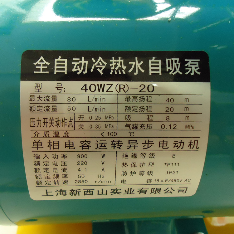 Free Flow Water Pump-Home Pump-Self Priming Pump-Shanghai New West Mountain Card 40WZR-20 Automatic Self-suction Pump