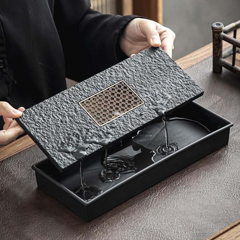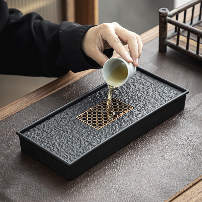 Imitation Urkin Stone Tea Tray Light Lavish Home Tea Set Tea Desk Small Belt Storage Drain Drain Pan Dry Bubble Table Tray Tea Sea-Taobao