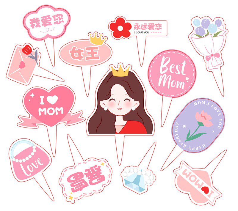 Goddess Festival Cake Decoration Plug-in Plug-in Card Retro Mum Mother's Festival Cake Inserts