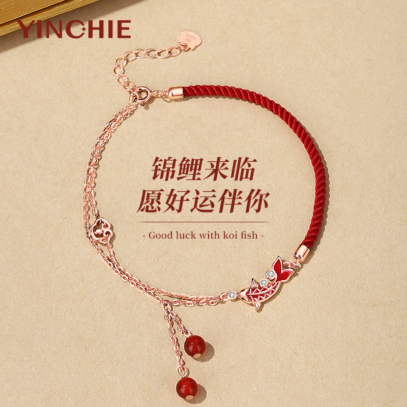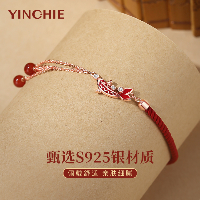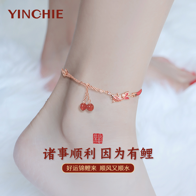 Red Rope Brocade Carp Pure Silver Footed Chain Woman 2023 New Tide Foot Rope Girls Senior Sense Foot Chain Birthday Christmas Presents-Taobao