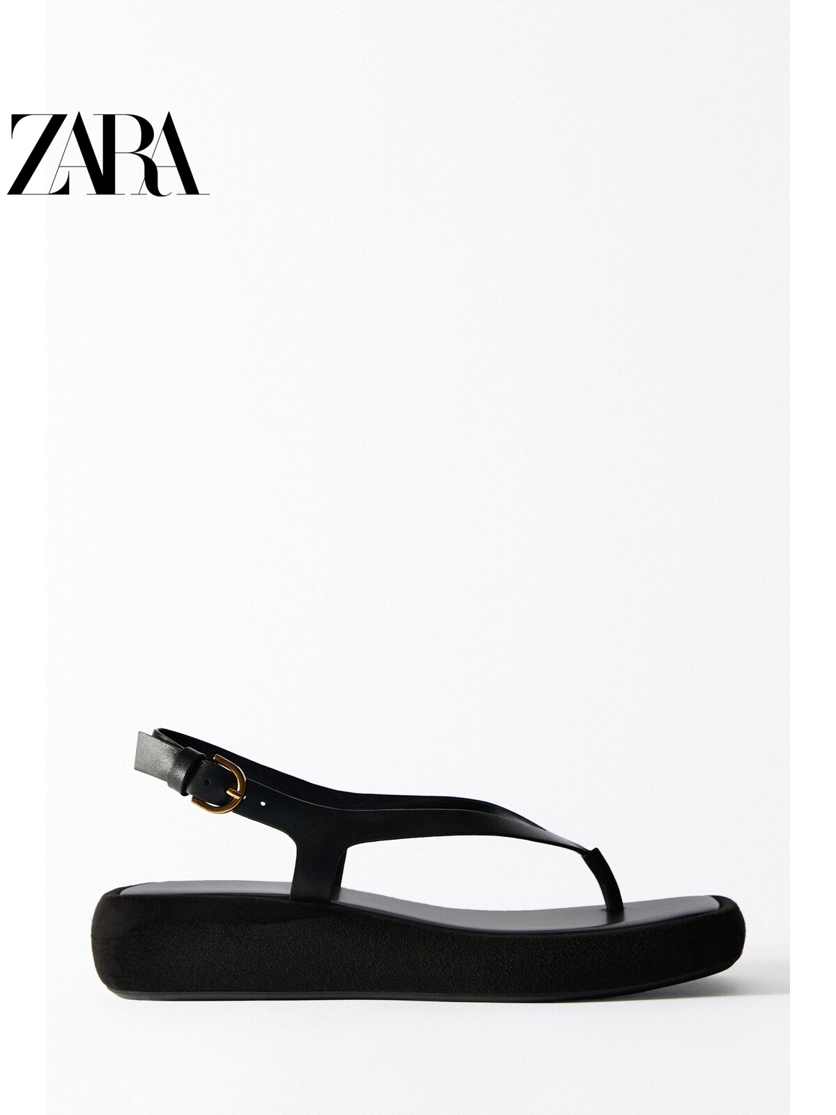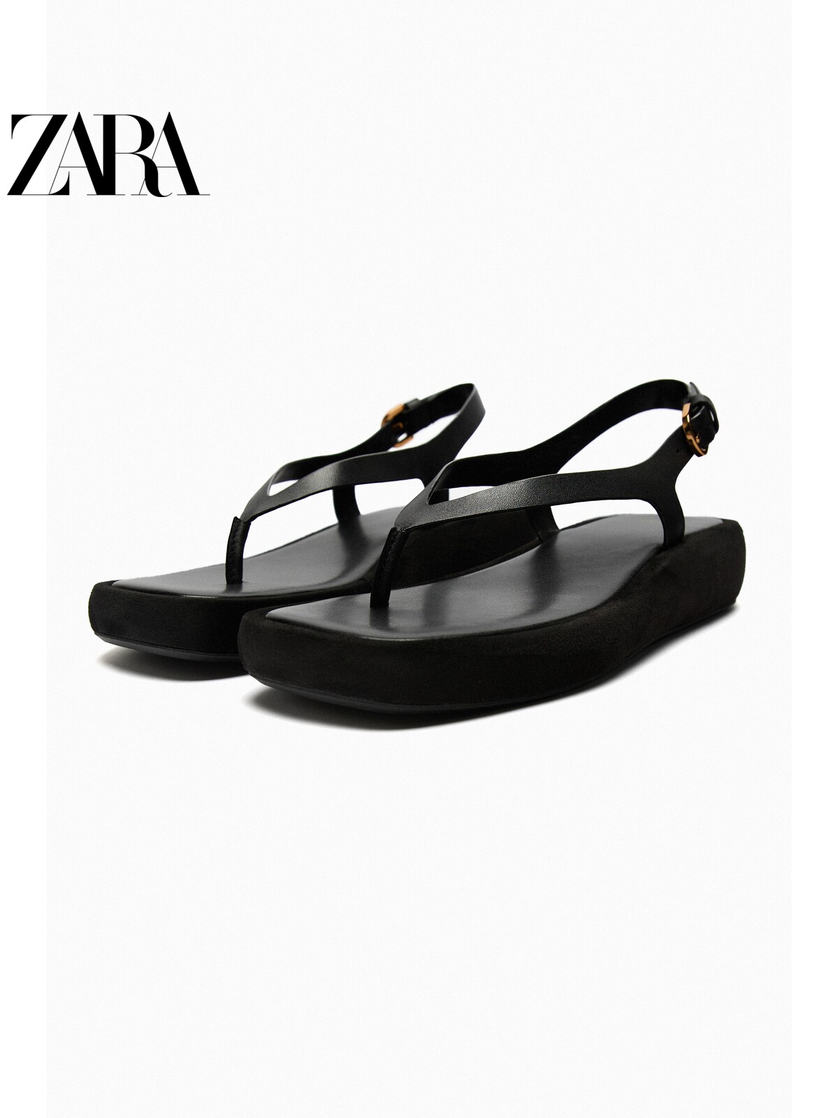 ZARA Spring New Women's Shoes Black Waterproof Platform Thick-soled Cow Leather Flat Sandals 1602110 800