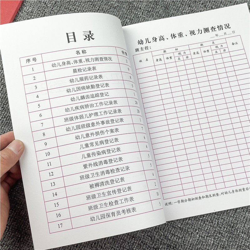 Kindergarten class health care registration book Children's height, weight, vision and morning examination quarterly annual records