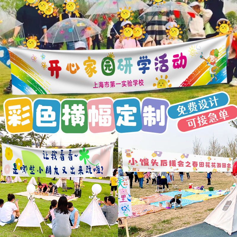 Banners Customized to do Kindergarten Parenting Activities Pull Bar Squad Flags Color Outdoor Research Writing Students Signs Anniversary Classmates Party Flags Making New Year Group Build Cartoon Autumn Tours Banner-Taobao