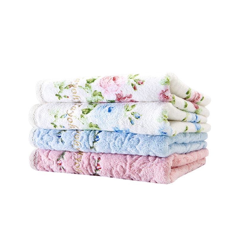 Two blue jacquard scarves blue printed bath towels Two pink jacquard-face towels-pink printed pink printed bath towels blue jacquard bath towels Two pieces of blue printed square towels Two pink
