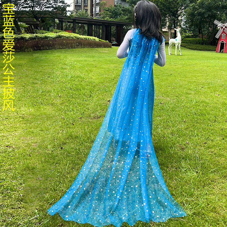 Love Yarn Princess Cloister Blue Thin style Long mesh yarn girl braces Dress Cloak Cape Baby Birthday Gown shawl-Taobao