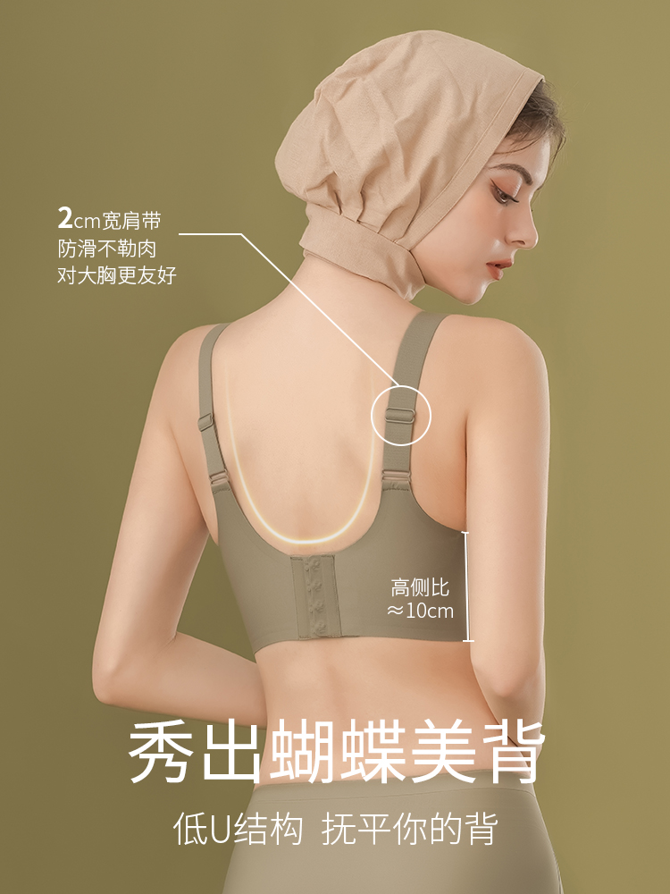Seamless anti-sagging push-up adjustable breast-retracting large-size large-breasted showing small-breasted underwear women's thin sports bra