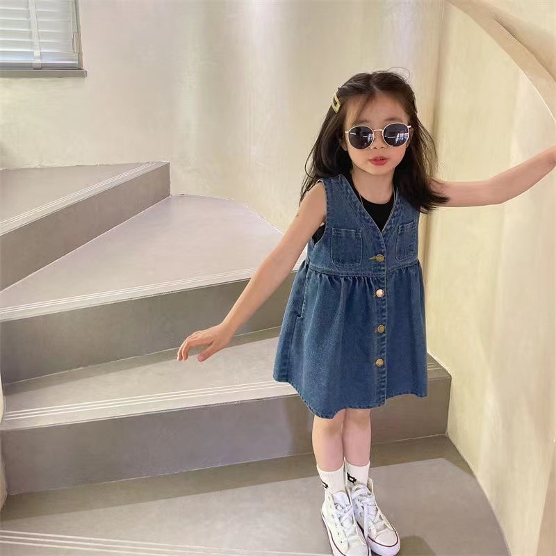 Girl's dress 2023 spring and summer new foreign air girl princess dress pleasant-dress baby sleeveless vest denim dress-Taobao