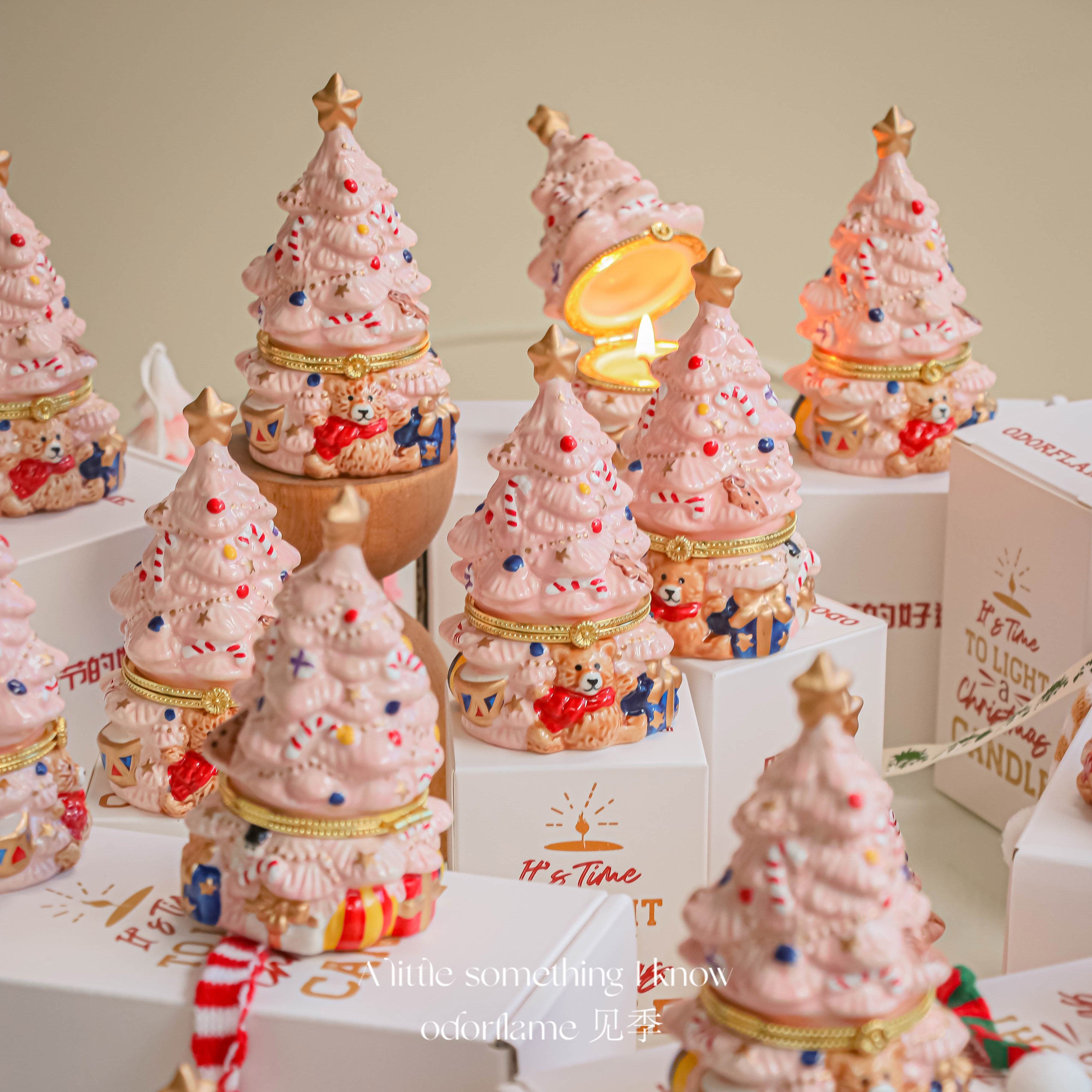 2 Pink Small Bears Christmas Tree Gift Box Pink White Bear Christmas Tree Gift Box Christmas Limited Pink Bear Tree Peony Velvet SPOT CHRISTMAS LIMITED POWDER SMALL BEAR TREE WHITE TEA SPOT CHRISTMAS LIMITED POWDER