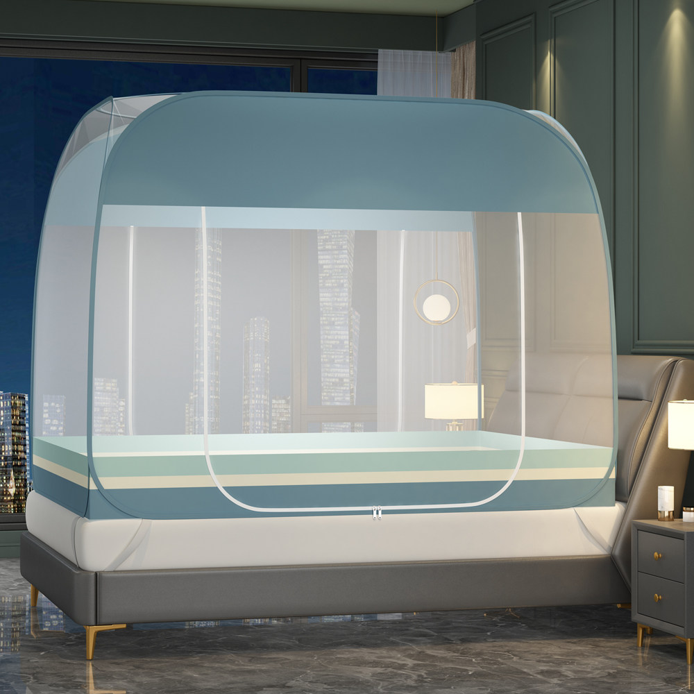 Mongolian bunk bed nets domestic double bed three door open zipped children anti-fall installation Advanced folding bedroom tattooed-Taobao