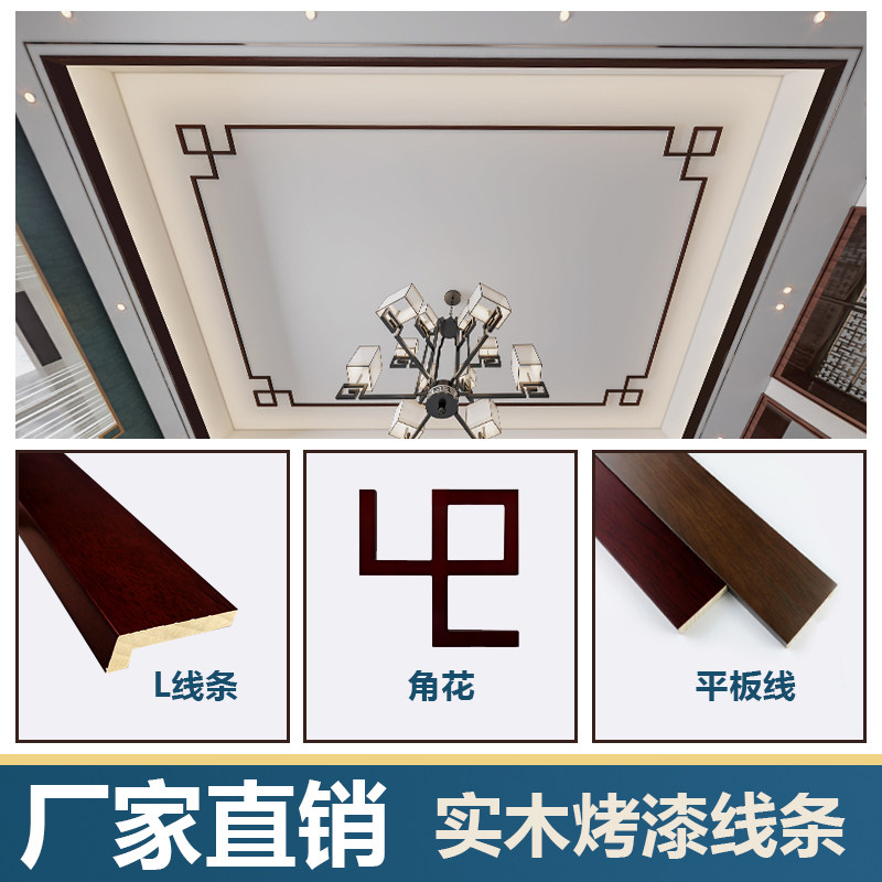 New Chinese Ceiling Solid Wood Line Baking Lacquered Top Corner Line Clitoral Line L Line 7 Word Line Living Room Background Wall Press Side Strip-Taobao
