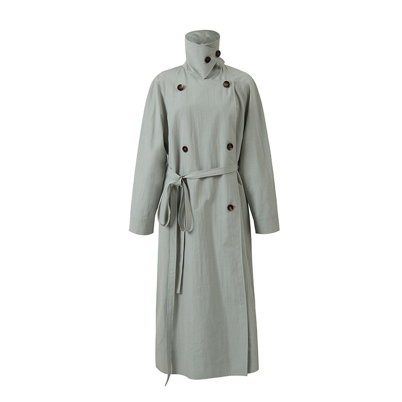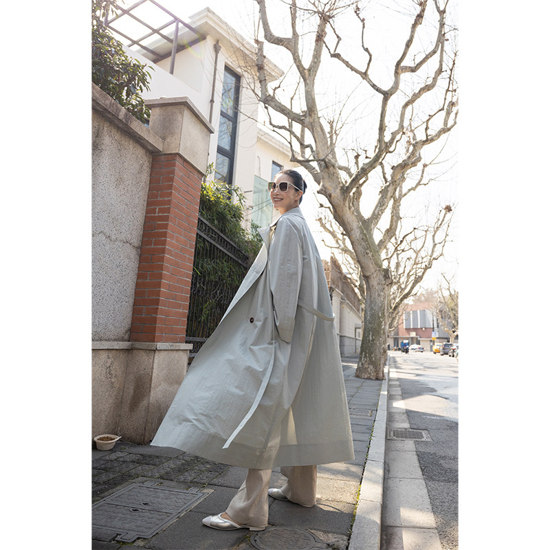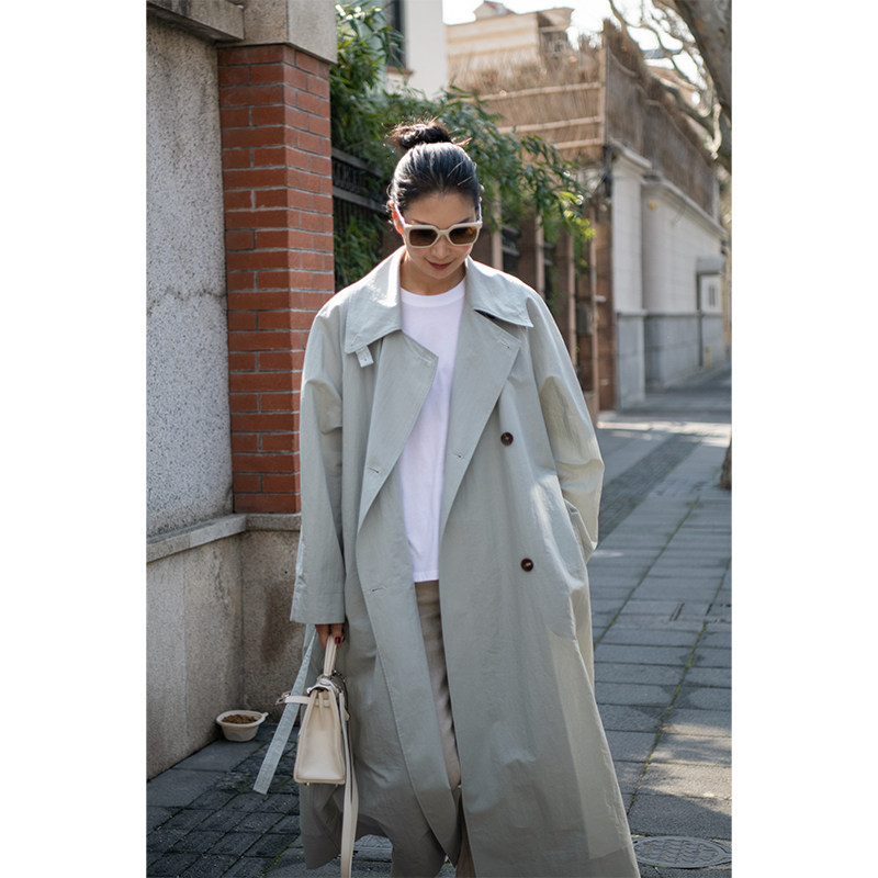 AmandaX "Morning in the Fog" High-count American cotton pleated oversize long windbreaker jacket