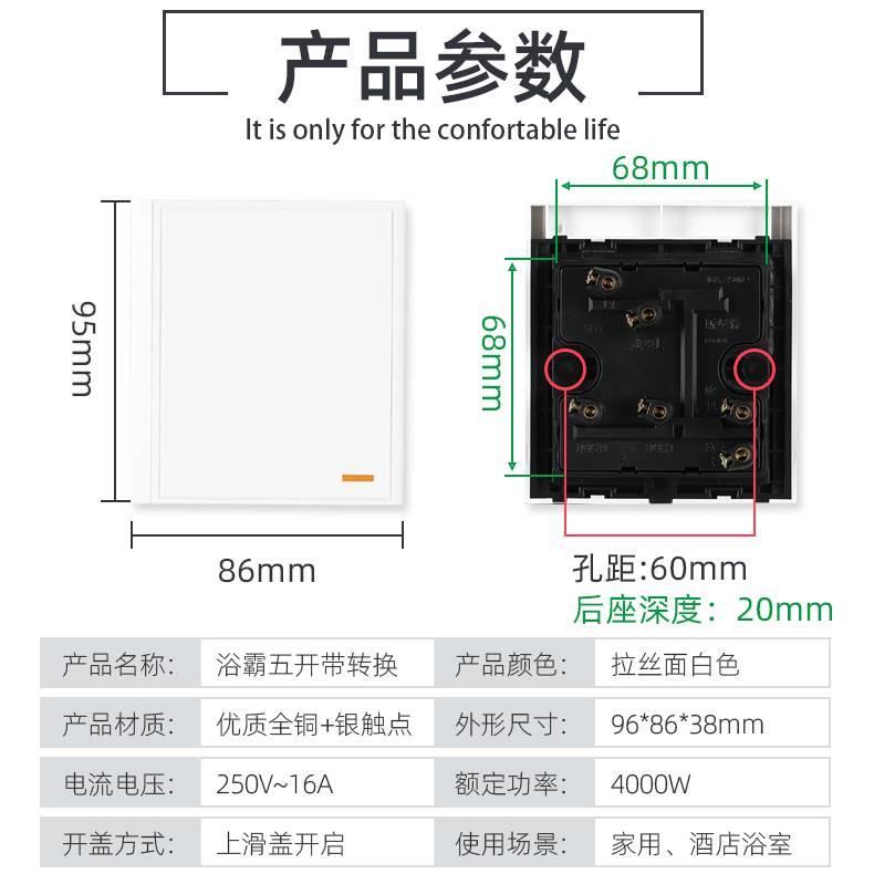 86 Five - Open Bath Switch 5DY with bathroom single - electric slider specially used with power - heating wind and home - resistant